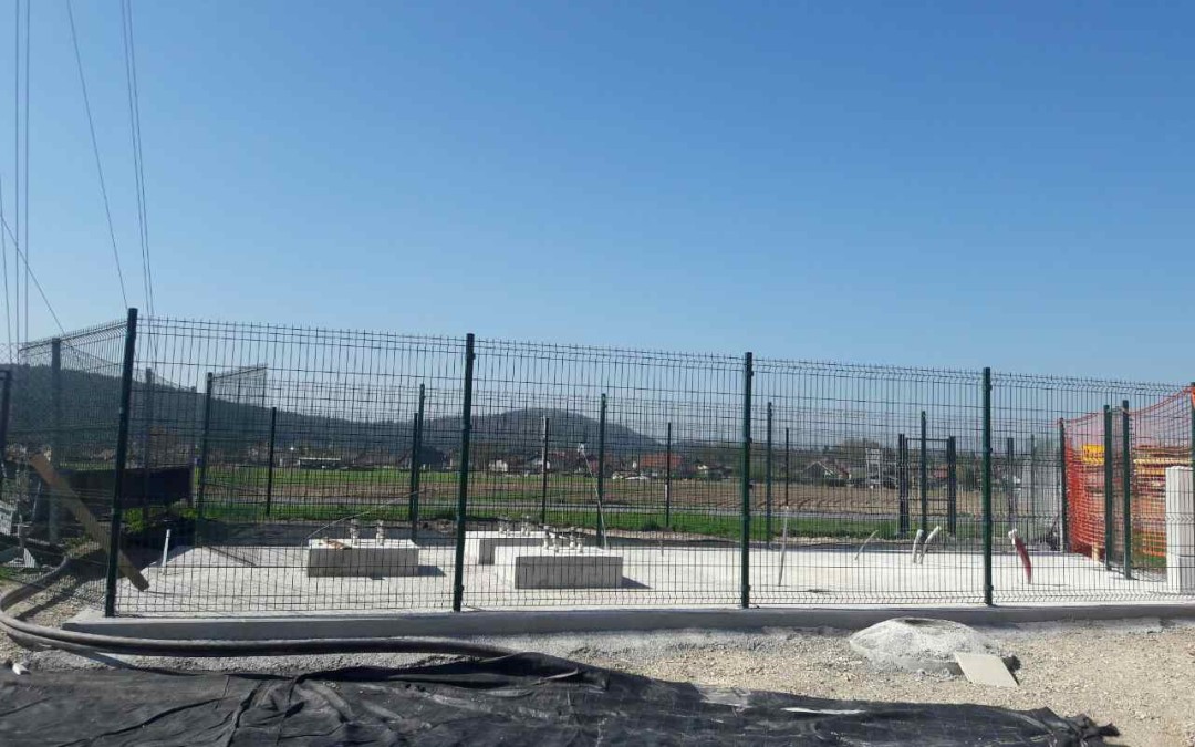 Objekt je zaščiten z montažno panelno ograjo višine 2,0m in vrati dim. 1×2,0m s cilindrično ključavnico. Panelna ograja je montirana na predhodno vgrajene nosilce ki so obbetonirani v temeljni plošči bazne postaje, dolžina ograje je 26m.